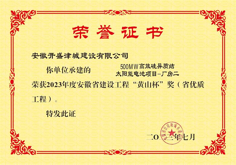 黃山杯--“500MW高效硅異質(zhì)結(jié)太陽(yáng)能電池項(xiàng)目-廠房二”